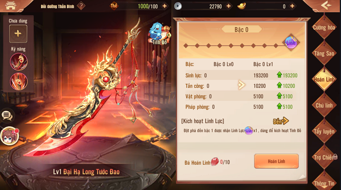• Khi Tăng Bậc Hoán Linh sẽ nhận được Linh Lực, có thể sử dụng Linh Lực để nâng cấp Tinh Đồ.